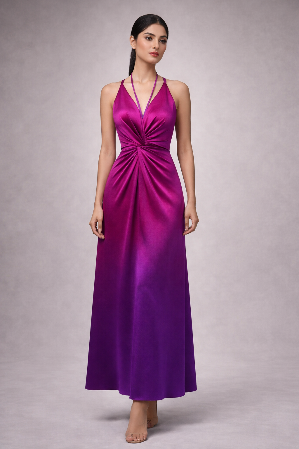 Details: Ombre Dying | Front Deep V neckline | Twisted Knot Detail At Waist | Loose straps To Tie On Neck | Back invisible zip | Lined with soft fabric