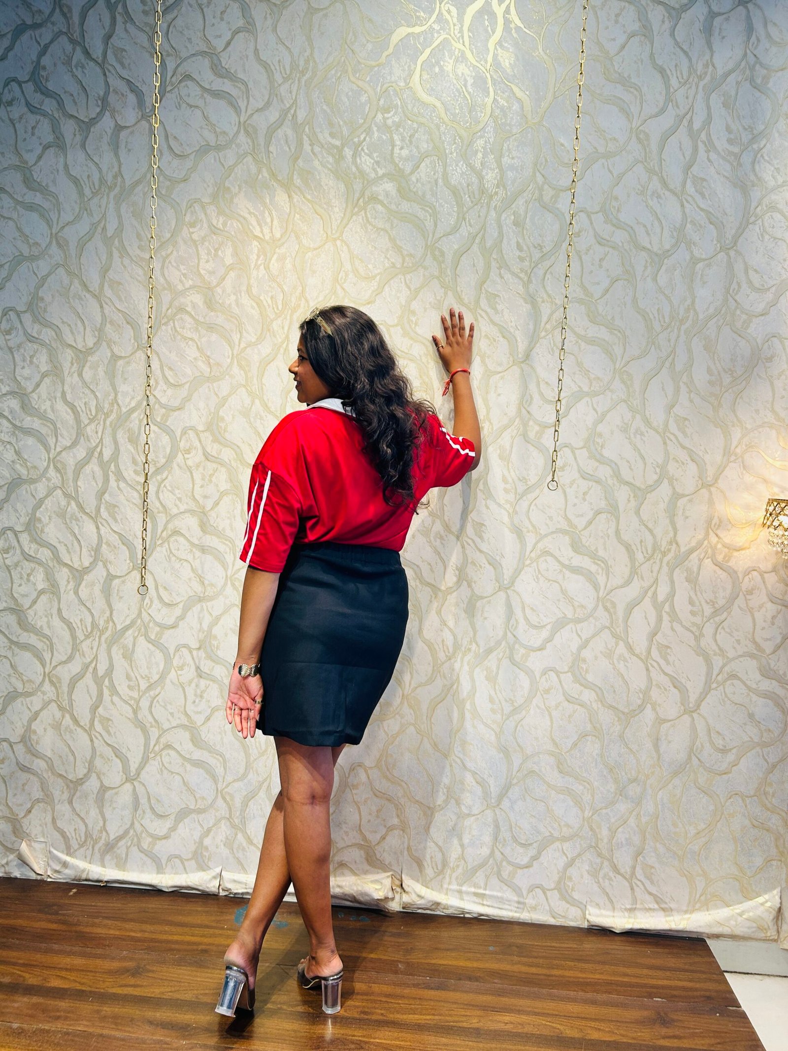 A bold high-waisted denim skirt crafted to sculpt your curves with edgy lace-up detailing. Designed to give main character energy — structured, confident, and effortlessly statement-making.