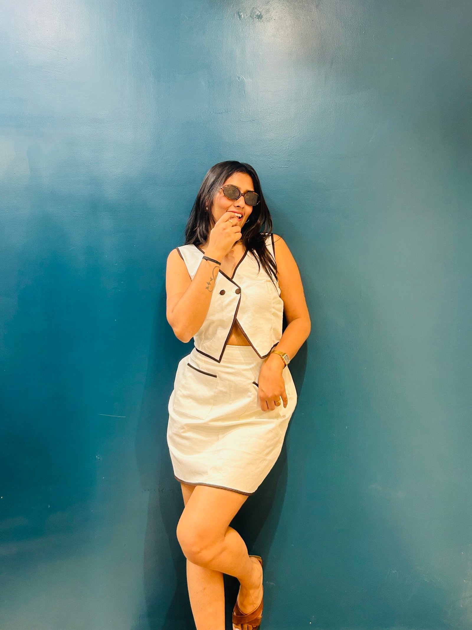 A chic neutral denim co-ord designed for effortless cool. Featuring a structured contrast-piped vest and a flattering mini skirt, this set blends clean girl aesthetics with a bold, modern silhouette — perfect for day plans, coffee dates, or your main character moments.