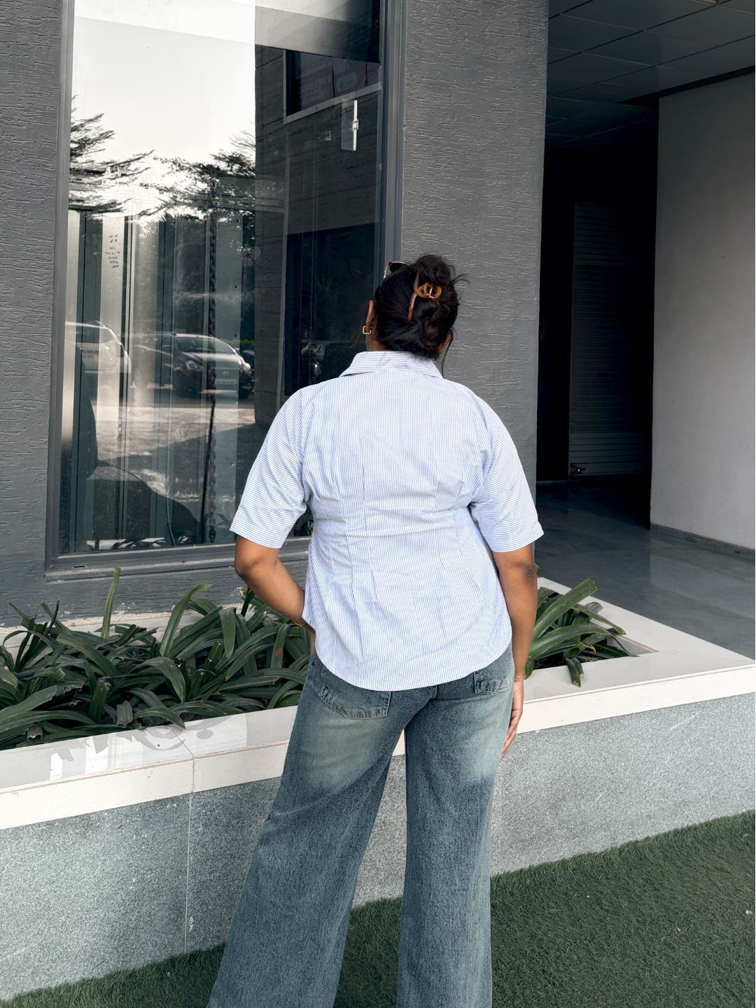 Buttoned up and polished at first glance — cinched gently at the waist to quietly show off what you’ve got, playful in the way it skims your curves and moves with you.