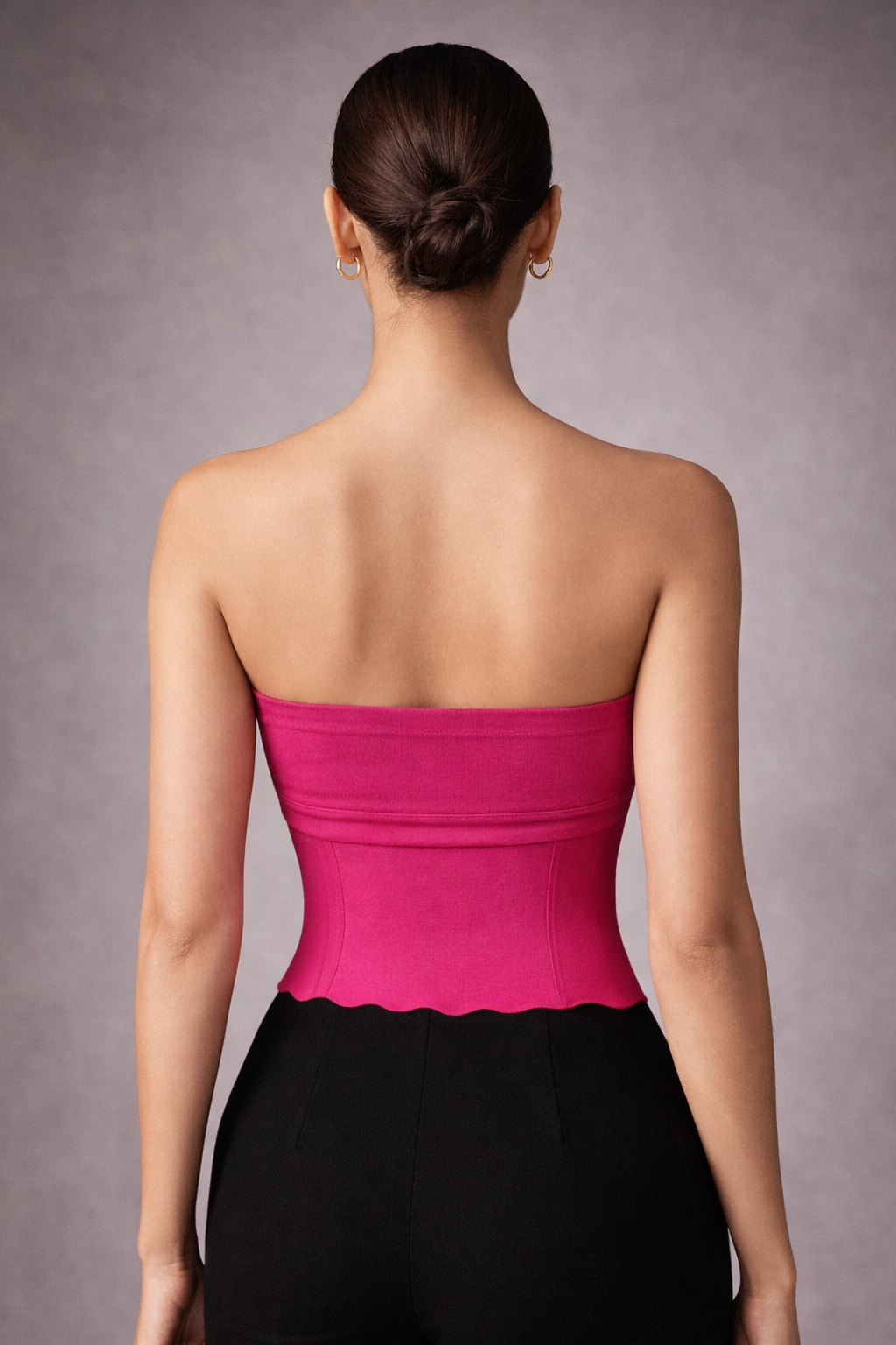 Details: Strapless Neck | Slight Pleats | Asymmetric Hem | Front Slit