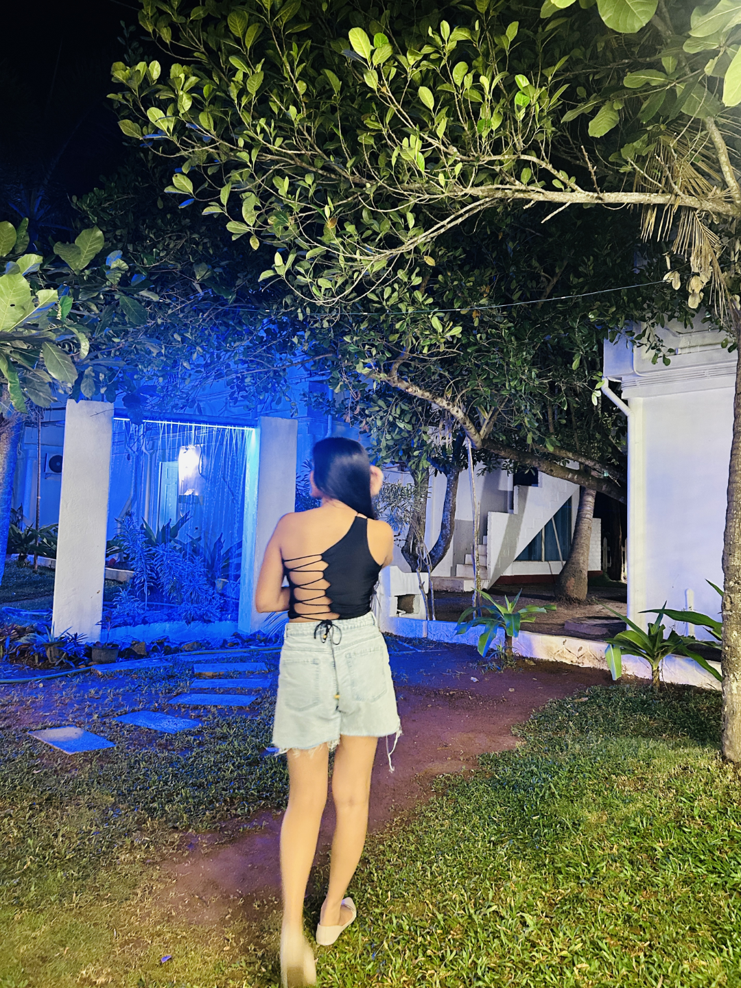 Details: Body Fitted | Woodern Beads | Noodle Strap at Front | Back Criss-Cross Tie-Up with One shoulder | Lined with strechable lycra
