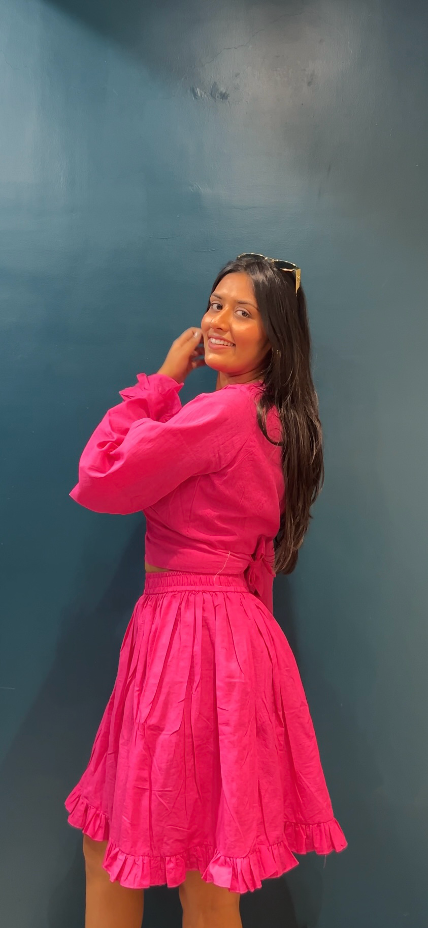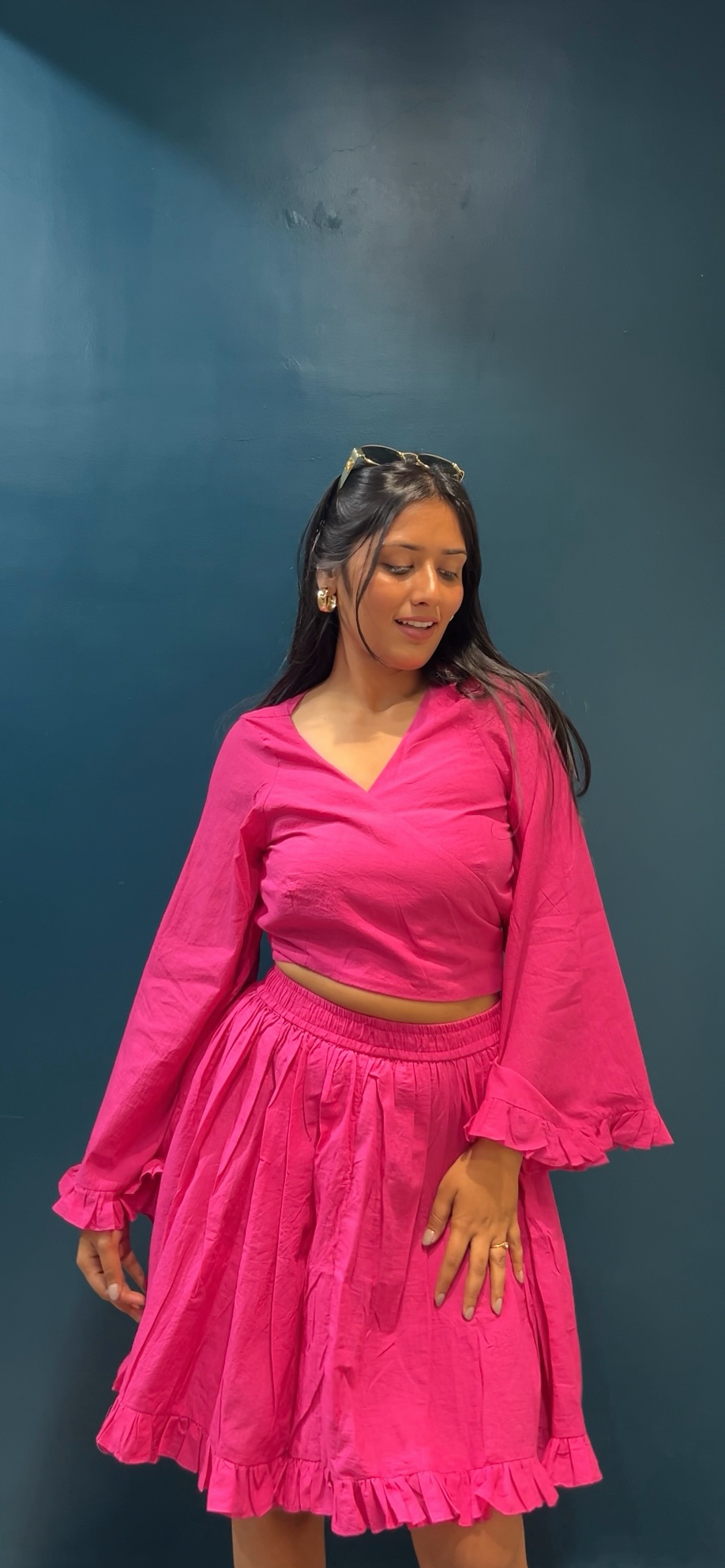 Top: Wrap around bust with bow tie-up at back | Full Sleeves with Frill Cuffs